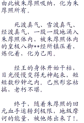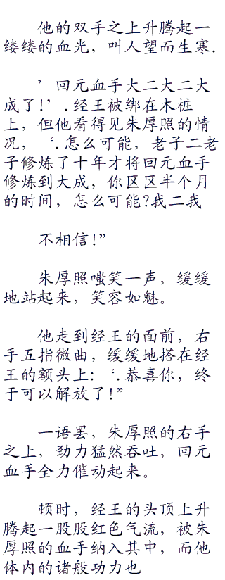 当然,回元血手的强大也是有局限性的,并非可以没有限制地吞噬别人的精神力量和武道境界。w w w c o m