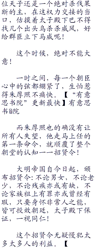 这一日对整个大明帝国来说都是并不寻常的一日。。 ww w ..co m因为今日是大明帝国的皇太子朱厚照,正式开始摄政的日子。