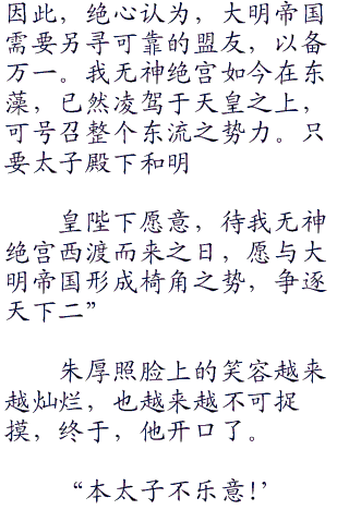 朱厚照始终坐在那观景亨的位置上.岿然不动,目光淡漠:“现在,你知道怎么说话了吗?”