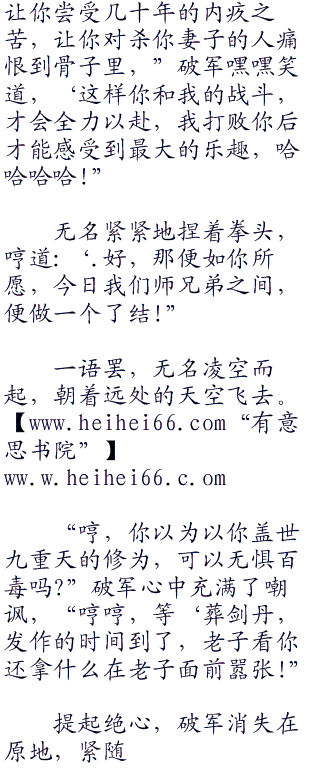 破军哈哈大笑:“为什么,当然是为了逼你这个懦夫全力跟我一战啦!””我要