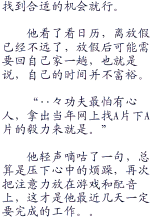 【霞诗子:不必道歉,垃圾君。同为创作者的我知道垃圾君的工作繁忙,仅以这个年龄来说,垃圾君你已经做到许多人一辈子都做不到的事了。有空闲时间的话再请看看吧,以垃圾君你作家副职的身份,我到也想听听你的意见。】