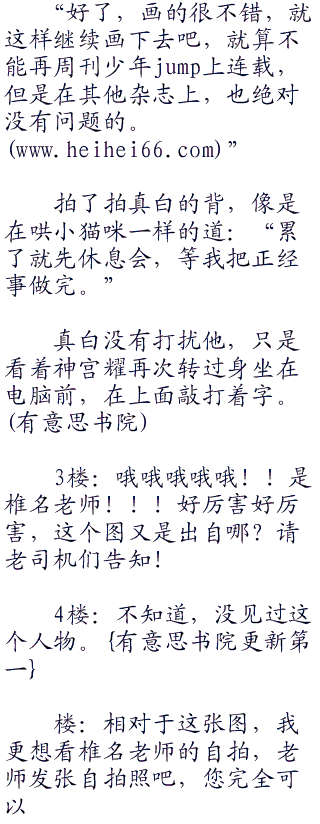 她的语气平静,好似一点都不在乎这个漫画到底好不好一样,但是神宫耀还是在她平静如古井一般的樱色双眸中,发现了那深埋在最深层的紧张。