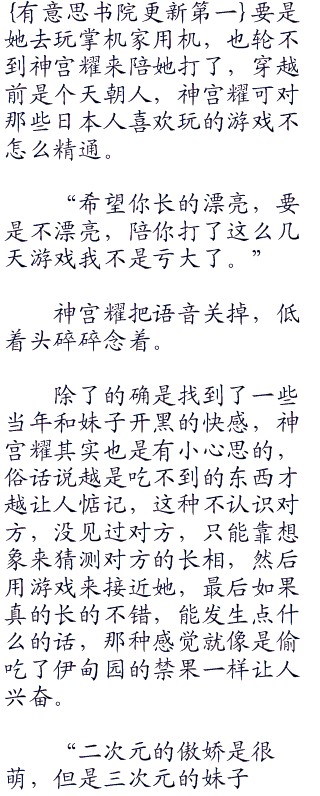 不过英梨梨到也没说错,如果那个叫做霞诗子的女孩子真的长的漂亮的话,他到不介意当个炮友