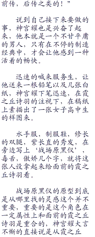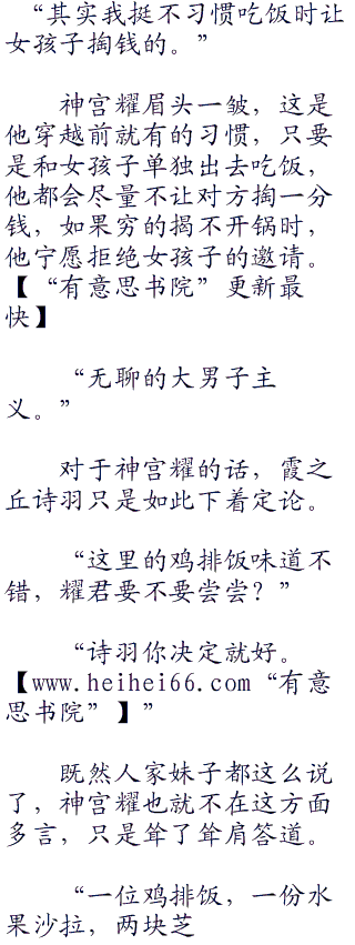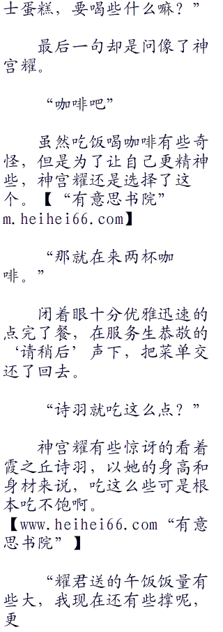 霞之丘诗羽如同一位主人般接过服务生递来的菜单,优雅的用她修长的手指轻轻的翻着。