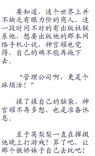 “没问题,回去后我也会找时间把基本的定稿完成的,到时候会将完成的稿子交给你。等这两天我做的游戏《月姬》的风潮过去后,在帮你推荐书,嗯?就用一些八卦的方式吧。”