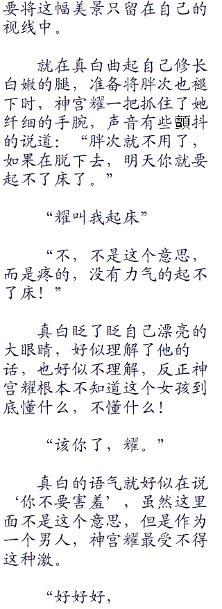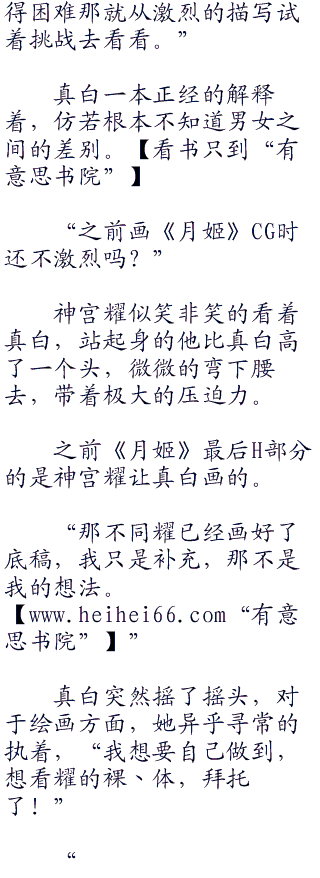 场面一时间安静了下来,神宫耀坐在椅子上皱着眉看着站在自己面前抱着小画板的真白,她面容平静好似不知道自己再说出什么勁爆的发言,但是那淡然平静的语气又带着点怯怯的羞意。