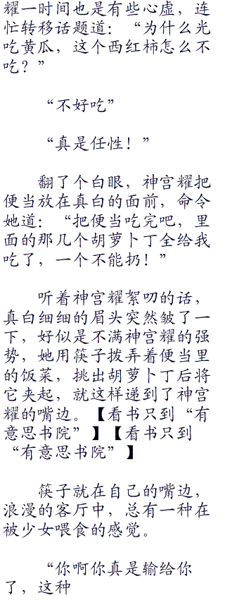 有的时候神宫耀忙起来后也是懒得去做饭,就和真白两人吃着便当过活。