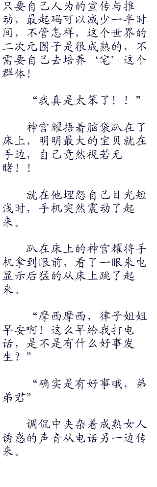 脑海中划过真白的俏脸,划过奏的娇颜,神宫耀就觉得脑袋疼,光是一个真白和奏就已经够累了,这位霞诗子老师还掺合进来做什么啊!