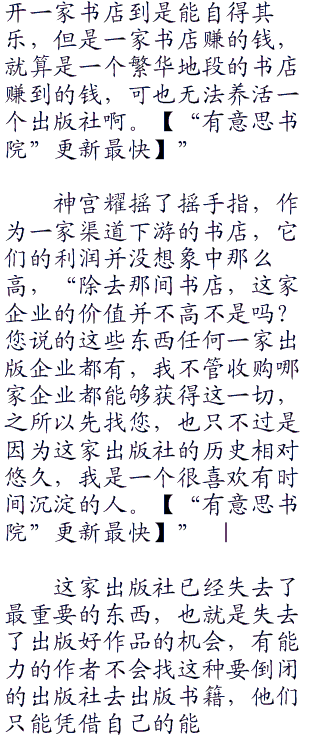 “说句实在话,我给您的这笔钱实际上就是支付的那间不大的书店的钱,那是这间企业唯一的一个赚钱项目了吧?不过如果您只是仅仅