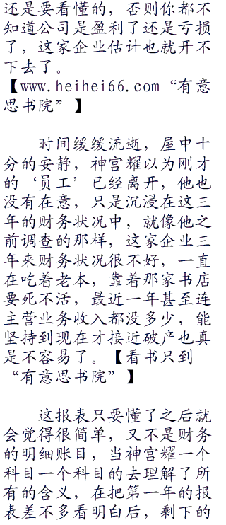 神宫耀一边对照着文字含义,一边理解着其中的意义,作为公司的拥有者,其他的你可以不会,但是基本财务报表