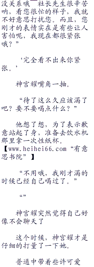 来人好像没料到神宫耀的要求,她略微停顿了一下,还是到饮水机处接了一杯白水放在了神宫耀的办公桌上。