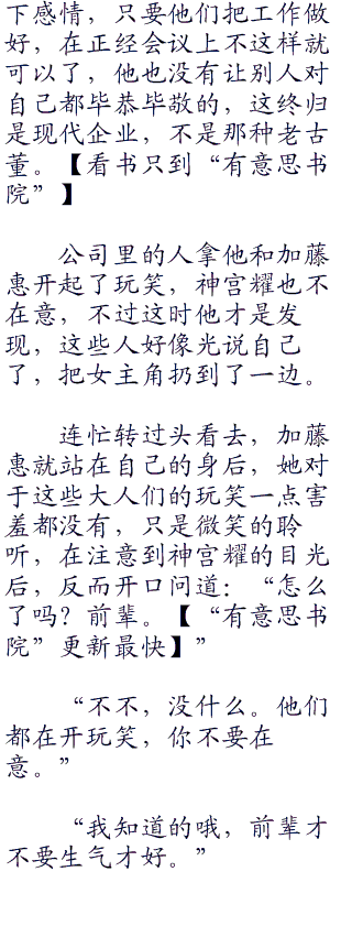 憨厚的男人摸了摸头,有些不好意思,“您过奖了,社长。那个,小惠真是麻烦您了,雨实在太大,她实在是不好回去,要不,您就让她去会议室待着吧,省的打扰您工作。”
