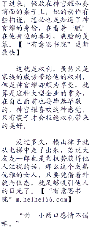 神宫耀皱着眉头在记忆中寻找着这个人的信息,他嘴角撇了撇,随口对身边的奏解释着。所谓常务就相当于公司的总经理,算是负责公司一切的大小运营,是由董事会任命,可以说就是除了董事会那些人外公司权利最大的人了。