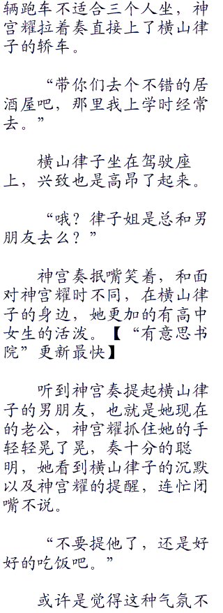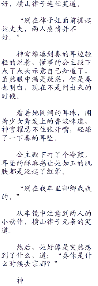 神宫耀面容严肃的正视着前方,说出的话却让奏脸上一红,忍不住的掐了他的手一下。