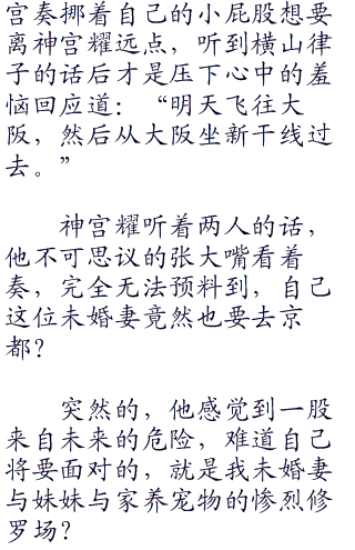和奏聊天调侃不同,神宫耀这个时候带上了客套的微笑,奏也是连忙站起身站在他的身边,礼仪完美,也不多嘴,到有一种夫唱妇随的意思。