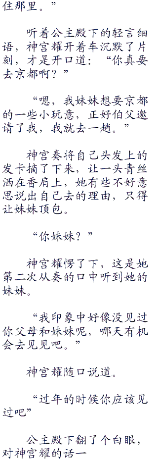 这真是一个诉说着古典之美的女孩,神宫耀看着旁边的公主殿下,谓然一叹。