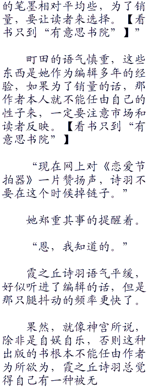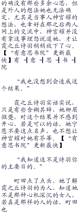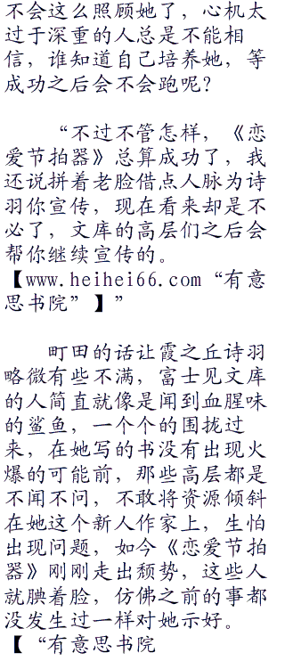 这些阴谋论有些冤枉她,那只是霞之丘诗羽觉得有趣的一点调皮心思,她虽然对写小说写剧本颇有天赋,不过对于如何宣传造势并没有什么经验,那张照片造成的结果就算是霞之丘诗羽也是惊讶万分,算是她的无心之过。