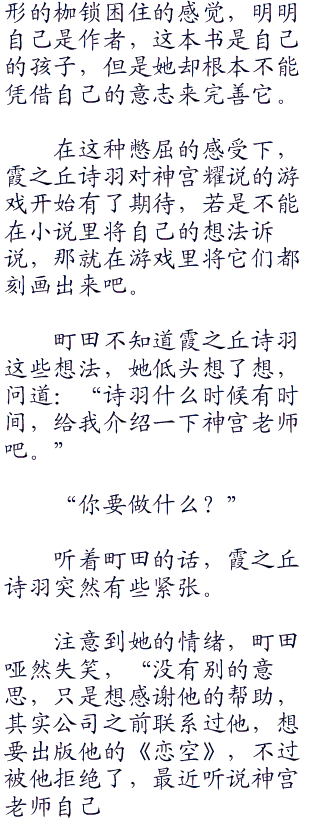 霞之丘诗羽深深的吸了口气,等着编辑的话。