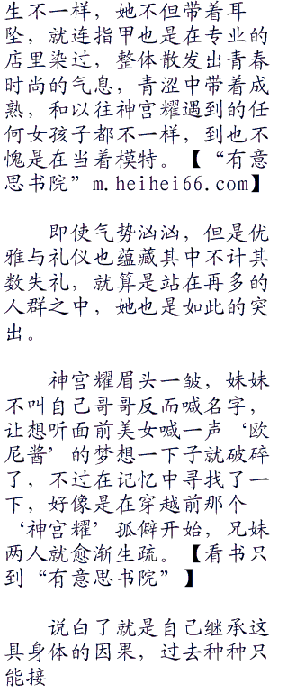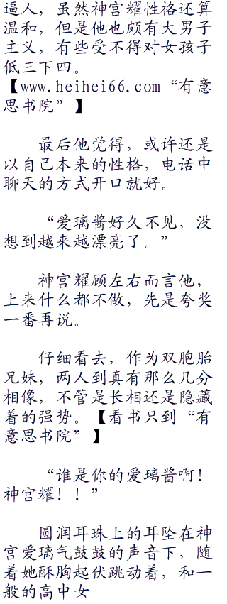 声音清脆悦耳,带着淡淡的嘲讽和隐藏在其中的驕傲,神宫爱璃樱唇微张,眼角上移,一头染成棕色的秀发在初夏的微风中洒荡。