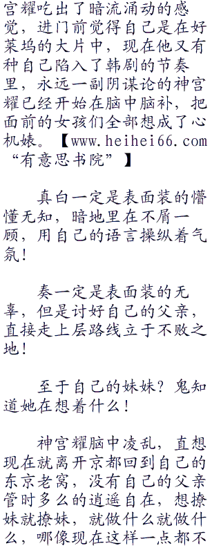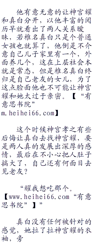 神宫孝之满意的点点头,看他的样子仿佛如果真白说神宫耀不好他就会不高兴一样,神宫耀终归是他的独子,也是未来的继承人,就算嘴上说着要严厉对待他,其实却很是溺爱,否则他绝对不可能答应让神宫耀自己出去独住,看看他的妹妹就知道,一直在被神宫孝之严加看管着。