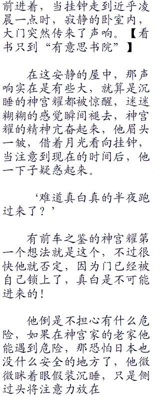 神宫耀嘀咕了一句,现在可不适合走出这间卧室,什么事都留在明天做才是正道。