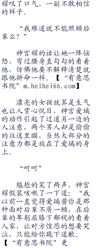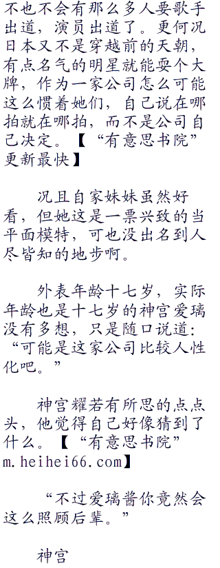 两人走在一起,不管是身高还是外貌都极其的相配,在加上一身时尚得体的穿着,走在马路上总会被人偷偷的窥视,甚至有的时候神宫耀怀疑会不会碰到星探找两人去当偶像。