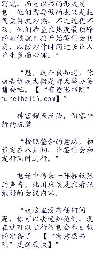 “嗨!是这样的社长,市场部那里让我给您打电话问一下,问您是否要亲自举办签售会?”