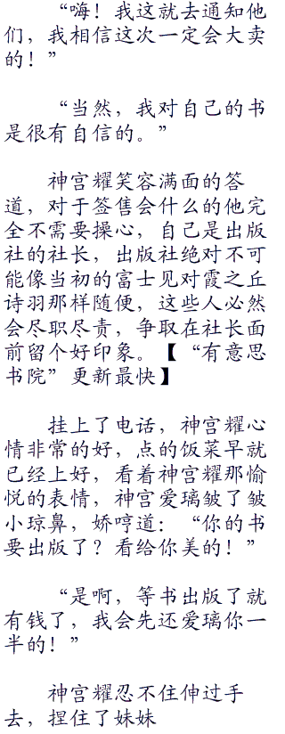来电话的正是出版社的总务北川忍,神宫耀脸上虽然很平静,但是内心也是有点紧张。