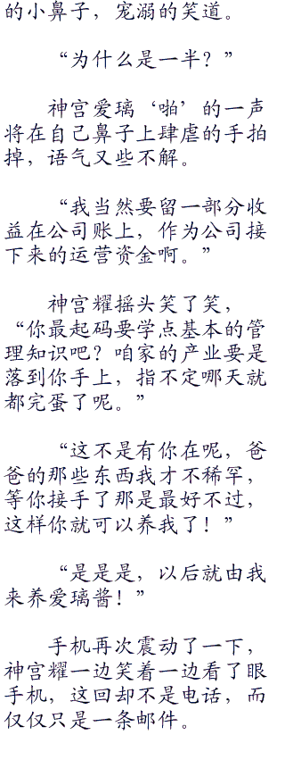 等上餐的时间有些无聊,就在神宫耀准备在找点话题聊聊天时,裤兜中的手机突然震动了起来,为了以防在人群中吵闹声过大而听不到手机铃,神宫耀的手机一直设置的是震动。