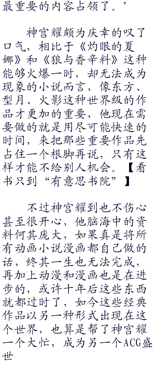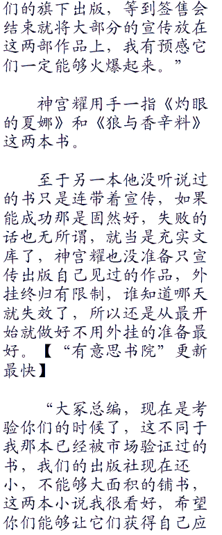 大冢圭吾给的名单目录上轻小说的名字并不多,但是有两本书的名字在神宫耀的眼里却也算是大名鼎鼎了《灼眼的夏娜》和《狼与香辛料》。