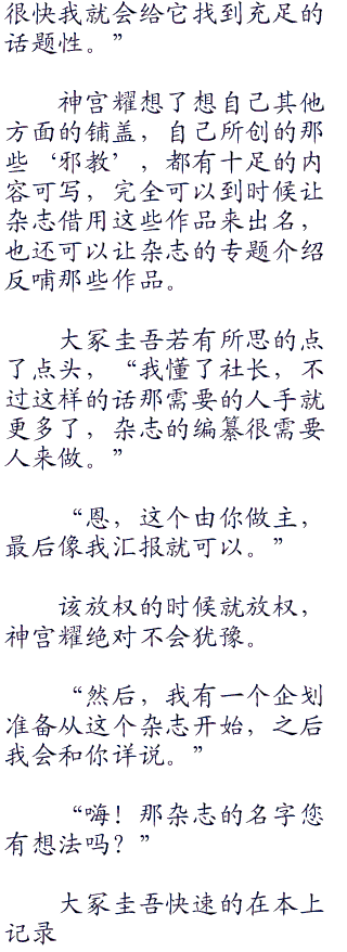 神宫耀将目光看向了一个三十多岁的斯文男子,他正是市场部的部长。
