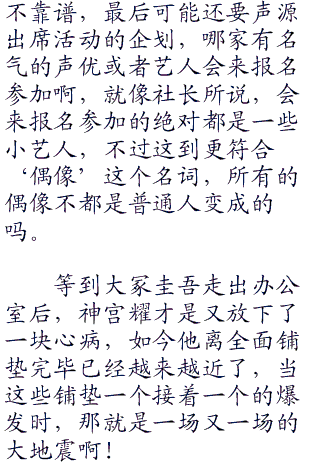 “您大概的意思我了解了,不过我们只是个出版社,这偶像的话难道就是讲故事?”