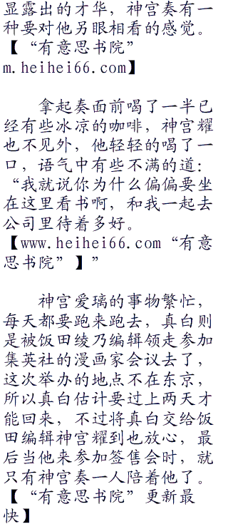 接近午饭的时间街上的人群也是多了起来,当神宫耀推开咖啡厅的大门时,一个优美的背影落入他的视线,那是一个纤瘦苗条的优雅女孩,她独自一人静静的坐在咖啡厅的角落里看着手中的书籍,就好似是一朵柔弱坚强的花朵盛开在喧闹的都市中,如此的与众不同,又如此的与这环境融为了一体。