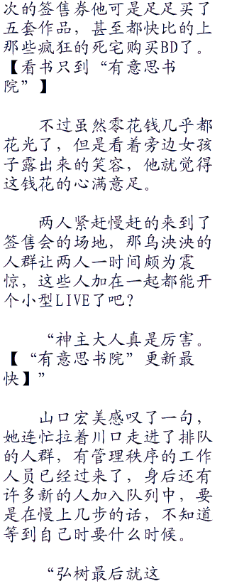 “是啊是啊,神宫老不对,是神主大人可不是那些偶像明星,很少露面的,这还是他第一次真人出现呢,为了能见到神主大人,必须要弄到签售券啊!”