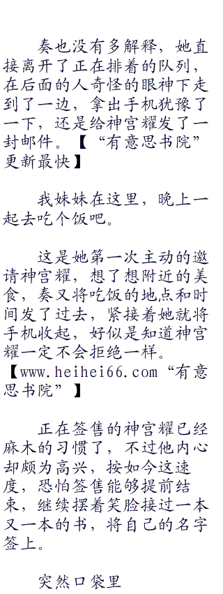 等到霞之丘诗羽走远,背影彻底的消失后,神宫奏低着头想了想,才是对妹妹道:“心爱,你自己去签售吧,我就不去了。”