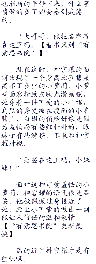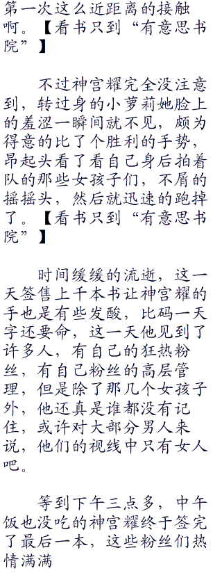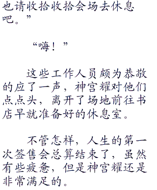 看到这位未来的国民偶像现在反而变成了追星族,神宫耀有种世事无常的感叹,将手中的书递给她,轻声道:“请务必更加的努力,我也会为你加