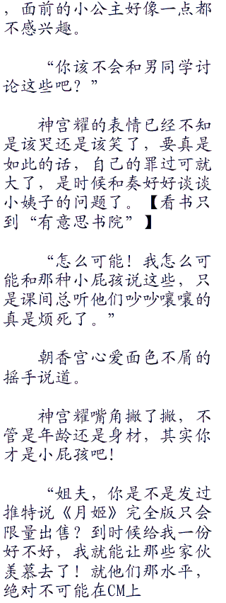 朝香宫心爱嘟着嘴将神宫耀放在她头上的手拿下,偷偷的瞪了他一眼。