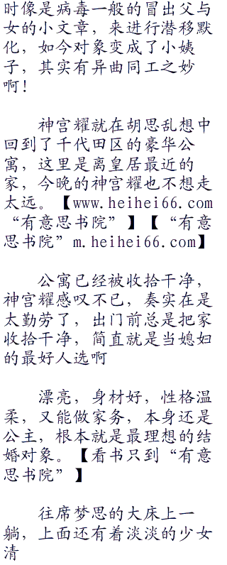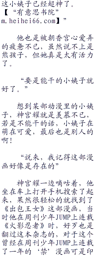 奏扭过头去不好意思看自己的妹妹,很是后悔今天把她带出来,不但一天都在受到她咸湿大叔式的发言,还在神宫耀的面前把自己好不容易留下的那点皇室公主的清高,丢了个一干二净。