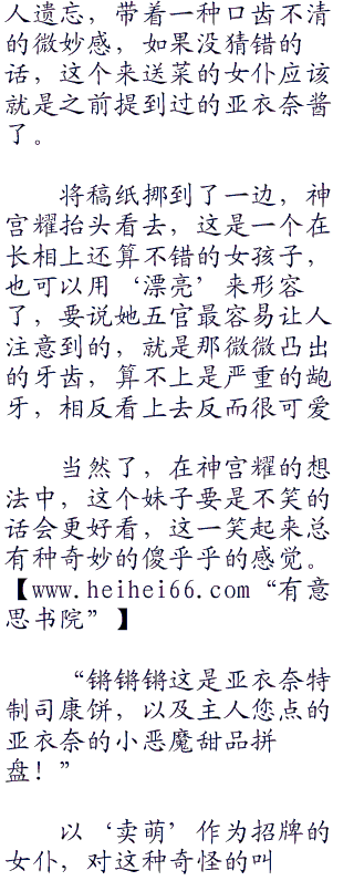 或许是发现了神宫耀的妹控属性,女仆小姐笑的更开心了,她在神宫耀翻着菜单时,用着萌萌的语调道:“今天我们这里可是有妹妹组的亚衣奈酱特制的限量司康饼和拼盘哦,主人要不要尝尝呢?”