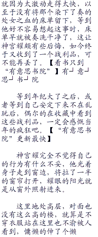 神清气爽,当神宫耀醒来时已经是第二天的上午了。