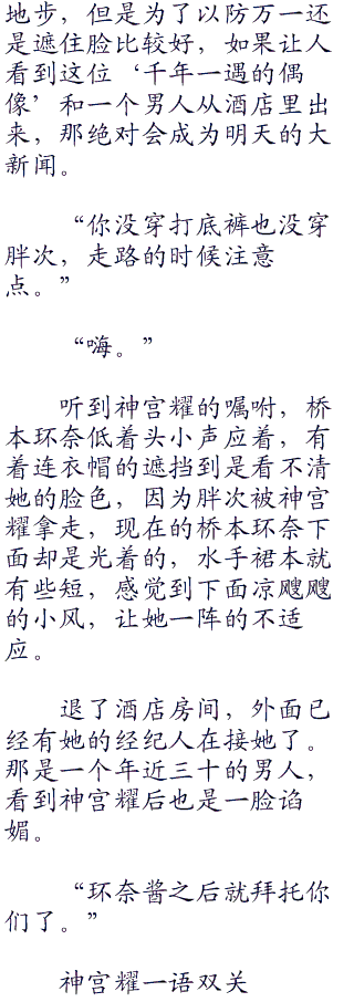 光着身子站起身,脚边踢到了什么东西,神宫耀低头一看,却是一个纯白的胖次,胖次的中间还留着一块红色斑迹,那是桥本环奈昨天流下的血。