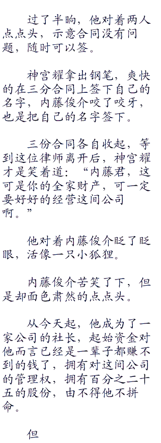 他打开了那个档案袋,从里面翻出一套合同,这是让横山律子早就准备好的。