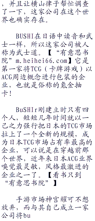 想了想,他才是缓缓道:“八年前热风海陆bushir作家吉田直的去世让这个企划流产还是轰动了一下的,若不是会长你提起了bushir个词,我还真想不起来。”