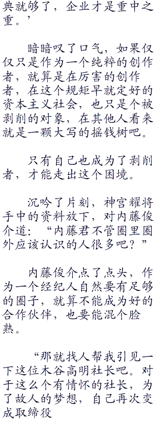 所站的位置不一样,自然考虑的东西也不一样,之前的内藤俊介想的是如何从普通经纪人这个位置走出去,一直如履薄冰战战兢兢,除了对圈里的事物比较多关注外,对其他东西并没有多想。