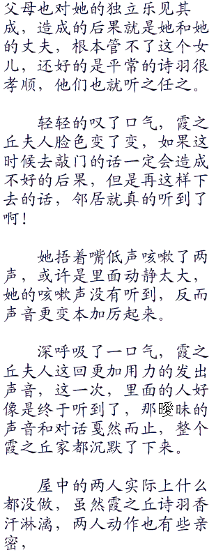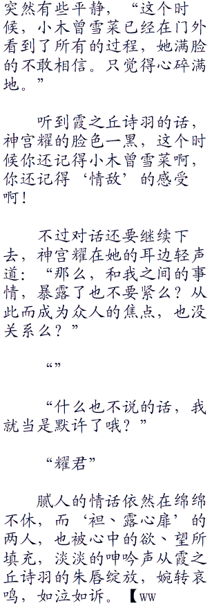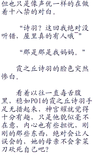 “在这样下去可就真要变成十八禁了哦,诗羽”