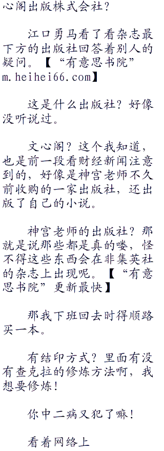 江口勇马刚刚来到这里,就看到几个人在热烈的讨论着,其中有上班偷懒的工作党,也有早就下学的国中党。