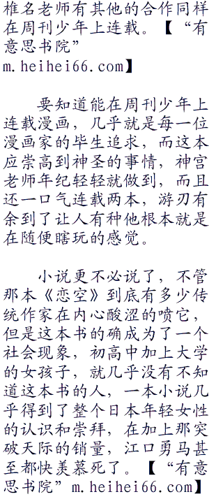画漫画,写小说,做游戏,除了游戏方面还没看出端倪外,其他方面神宫老师真的是做到了这些个职业的顶峰了。