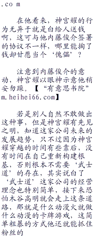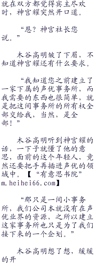 他心动的原因还有一个,就是神宫耀说的欣赏他的经营理念,在之前的公司时,他就是因为这个理念而被扫地出门,如今被神宫耀说欣赏,要说不开心是不可能,只不过他城府很深,不会让自己的想法表露在脸上。