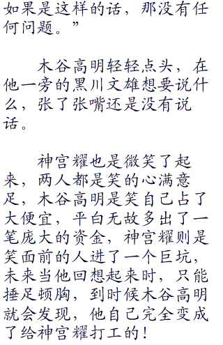 但是,他确实心动,因为神宫耀给出的价格实在是太让他动心了,他们公司一年的销售额都到不了这个地步,更遑论是净利润了,木谷高明的野心很大,他有许多事情想要去做,如今缺少的正是资金!