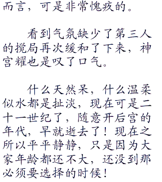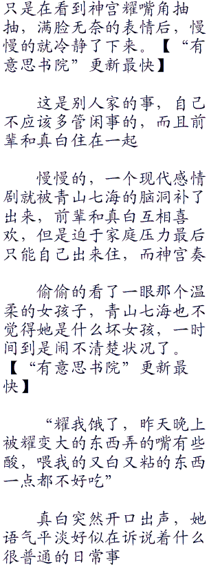 这是个太过于固执的女孩,神宫耀在与她稍微接触后就了解了她的性格,所以神宫耀从未说过什么会帮助她‘走后门’之类的话,如果真那样做的话,不但不会得到这个女孩的感激,甚至会得到她的恶感吧,因为那是否定了她的努力,否定了她为之付出的一切。